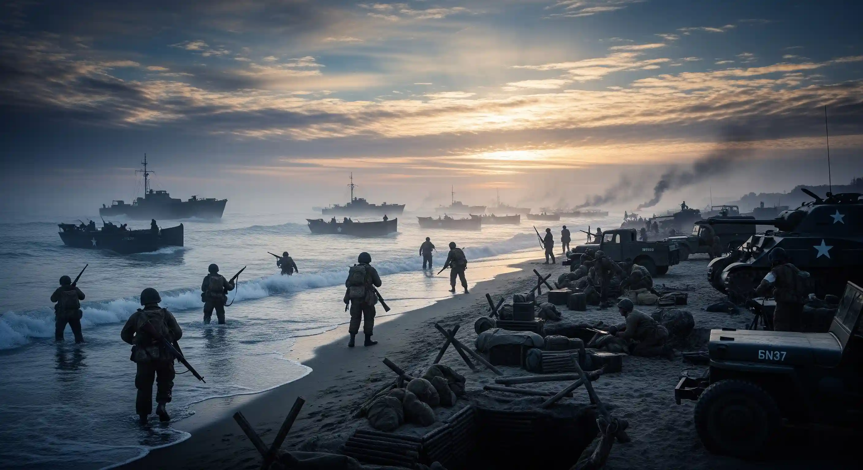Rivivi il momento dello sbarco e delle battaglie successive attraverso le fotografie e le riprese originali effettuate dagli Alleati